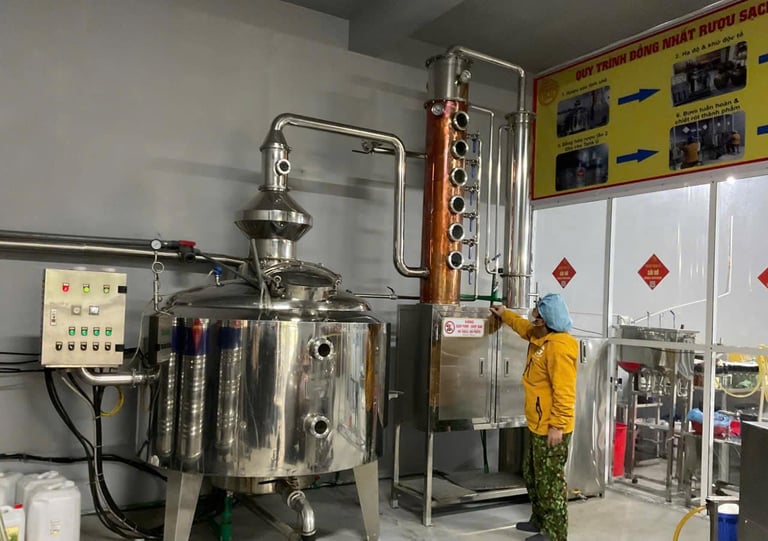 Chúng tôi tiên phong trong sản xuất rượu tinh chất, ứng dụng công nghệ Châu Âu - chưng cất tháp đa tầng và lão hóa, khử độc tố.